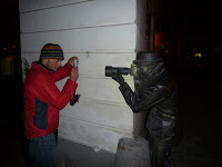 Arriviamo con il brutto tempo che ci aspettiamo di trovare: piove. La città sembra deserta, mentre passeggiamo per le vie del centro, le stesse che probabilmente di giorno sono affollate di turisti, né c’è traccia delle bellezze locali di cui abbiamo sognato per tutto il viaggio, solo statue in posizioni curiose piazzate qua e là per le strade, con le quali ci divertiamo a scattare qualche foto.